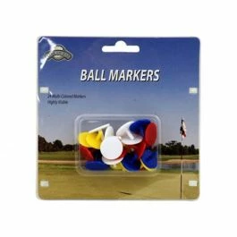 The J&M Golf Ball Markers are made of high-visibility plastic to help you find your mark.